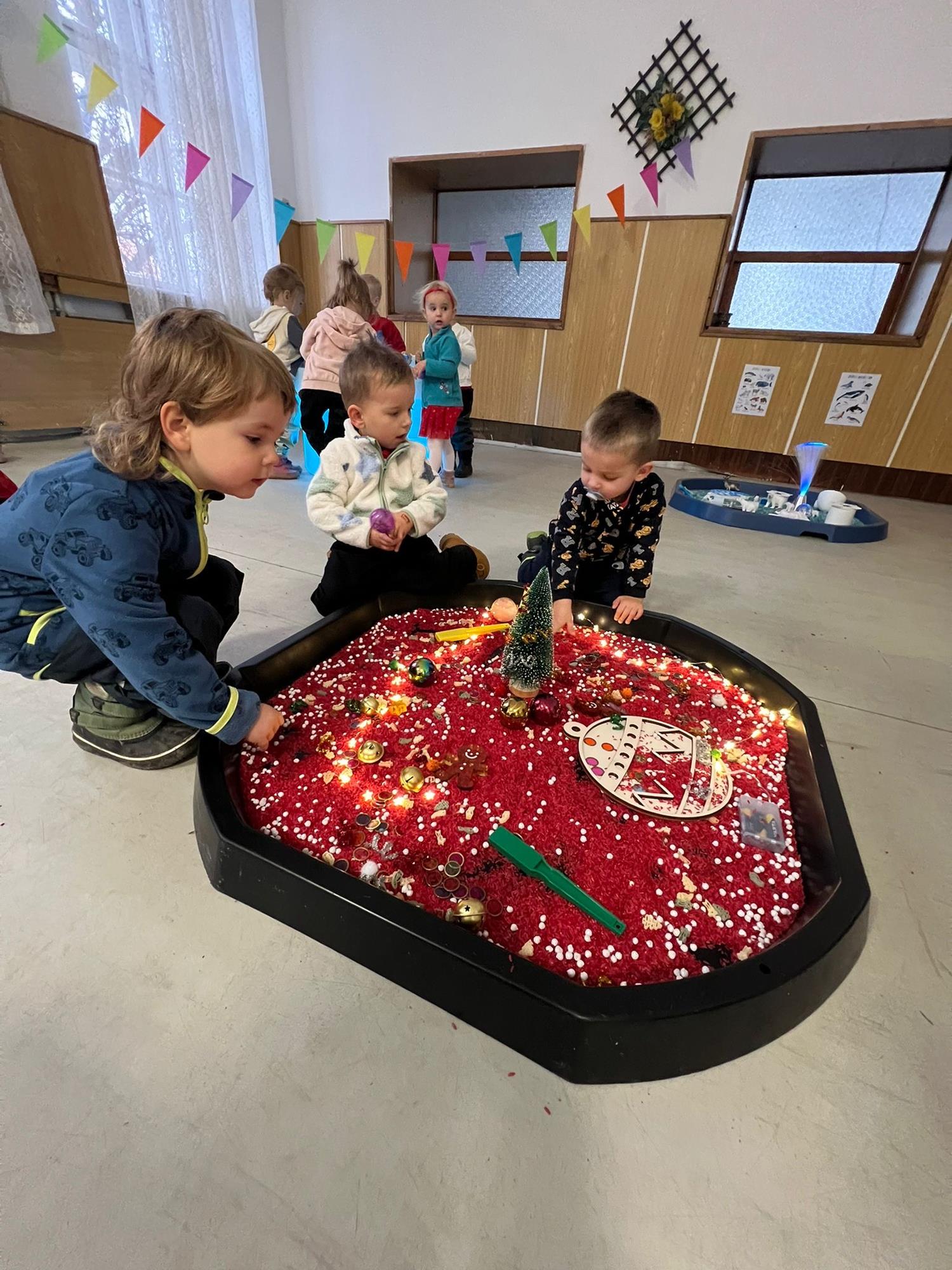 Vánoční atmosféru jsme nastartovali úžasným smyslohraním pod vedením profesionální lektorky z #hrackytoc. Přivezla nové aktivity a děti nevěděly, kam dřív skočit. Každé stanoviště nabízelo jinou strukturu, vůni či zvuk – ale hlavně možnost učit se skrze vlastní tělo.