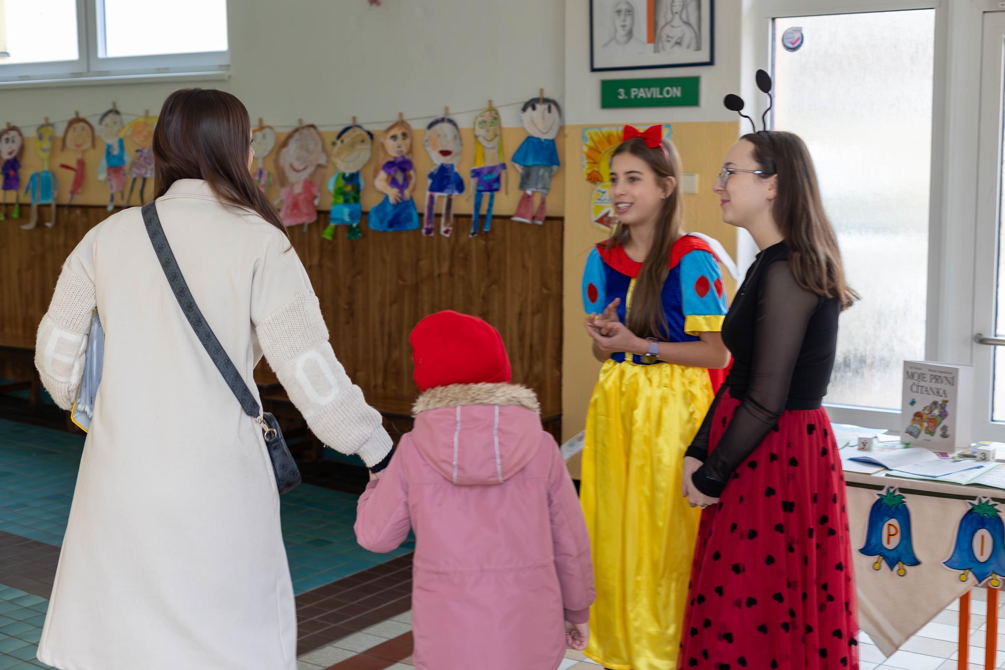 Co se nezměnilo, je snaha celé naší školy budoucí prvňáčky vřele přivítat. Na děti čekala řada dárků a drobností, které pro ně připravili kromě sponzorů (společnost BOVYS) hlavně jejich starší spolužáci. Zejména děti z 5. a žákyně 8. ročníku v pohádkových kostýmech zaslouží velké poděkování za to, že byly ve dnech zápisu našim nejmenším i jejich rodičům milými průvodci.