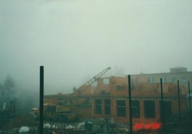 Asi po dvou letech soužití gymnázia a základní školy v jednom objektu se vedení města rozhodlo, že střední škole poskytne k dispozici nevyužívaný objekt na sousední adrese Školní čp. 995. Ten vznikl na přelomu 80. a 90. let 20. století z iniciativy tehdejšího ředitele ZŠ, Mgr. Františka Švepeše, který jej chtěl využívat jako pavilon mimoškolní činnosti. S přihlédnutím k porevolučnímu vývoji ale z těchto plánů nakonec sešlo a budova začala plnohodnotně sloužit gymnáziu.