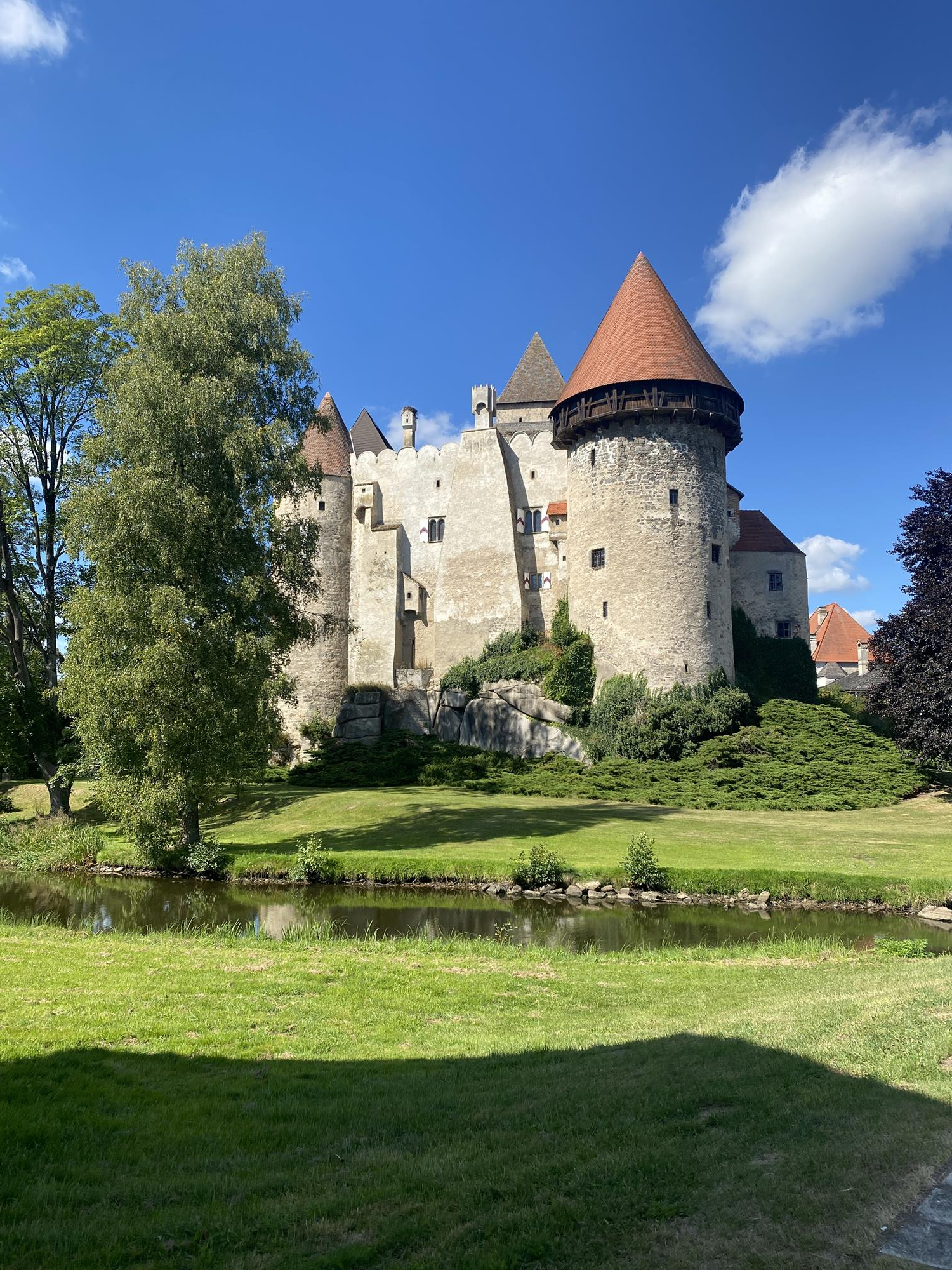 Ve středu už nebyl program tak náročný na chození, protože jsme vyrazili autobusem do nedalekého rakouského příhraničí. Slovo nedalekého lze ale použít jen pro pěší, cyklisty, maximálně osobní automobily, protože autobus se do hmotnosti 3, 5 tuny prostě nevejde, ať děláte, co děláte. A tak se muselo až do Halámek. Představte si, že silnice nejsou rozkopané jen u nás, ale i v Rakousku. A tak nečekané cedule se slovem Umleitung nám cestu nejen prodloužily, ale i zkomplikovaly. Naštěstí jsme vyjeli s dostatečným předstihem a začátek návštěvy zajímavého hradu v městečku Heidenreichstein jsme stihli. Hrad patří rodu Kinských a nám se dokonce podařilo domluvit výklad v češtině. Účastníci byli prohlídkou příjemně překvapeni.