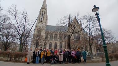 Naše kroky vedly nejprve k Votivnímu kostelu, odkud jsme se přesunuli na hlavní trh u radnice na Rathausplatz. Zde byl první rozchod, který účastníci využili k ochutnání pravého vánočního punče a tradičních preclíků. Dále jsme pokračovali kolem Hofburgu ke katedrále sv. Štěpána. Kdo měl zájem, mohl nahlédnout do interiéru katedrály nebo vyjet výtahem na severní věž a pokochat se výhledem na město a zvon Pummerin.