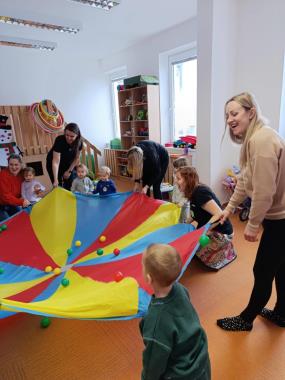 S dětmi přibližně od roku a půl můžete přijít v úterý a v pátek od 9:00 na dopolední program s hravými říkánkami s pohybem, tanečky, zpěvem i tvořením. Po programu je pro vás naše herna otevřená až do půl dvanácté. Ve středu od 9 hodin k nám pak zveme maminky s těmi nejmenšími dětmi. S dětičkami si dle možností lehce zacvičíme, pohrajeme a hlavně si budeme povídat. Děti se seznámí s novým prostředím, novými hračkami a dojmy a s budoucími kamarády. A nové prostředí a kontakty udělají radost i rodičům, stejně jako příjemně strávené dopoledne s dětmi a sdílení a předávání zkušeností s ostatnimi rodiči. Na všech našich programech vládne pohoda, vstřícnost a dobrá nálada a nás velice těší, že se k nám rádi vracíte a věříme, že i tento rok bude plný krásných setkání.
