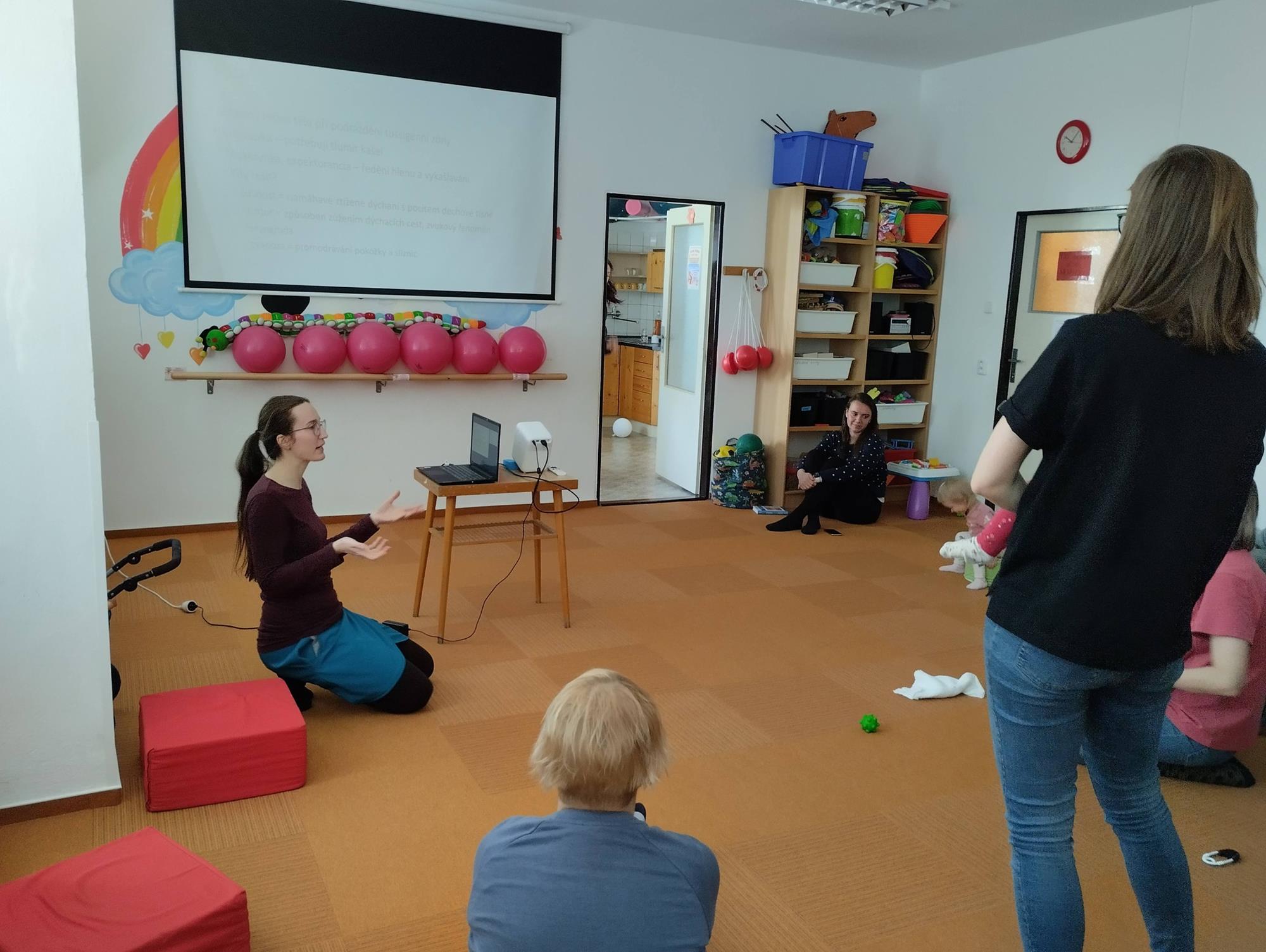 Náš duben byl ale také měsícem vzdělávání, protože nás čekala ještě jedna přednáška. A to s nikým jiným, než s naší oblíbenou lektorkou Mgr. Veronikou Jiříkovou. Její přednášky z oblasti výchovy a dětské psychologie jsou plné energie a už řadu let přinášejí maminkám malých dětí spoustu nových informací, rad, uvědomění a hlavně uklidnění. Tektokrát jsme se zaměřili na možná trochu méně příjemné, ale důležité téma dětského smutku. Teď už víme, jak ho s dětmi zvládnout, jak jim umožnit jej bezpečně prožít, na co si dát pozor a co dělat, když se dětem stýská. Veru, děkujeme a těšíme se na další interaktivní přednášky!