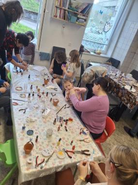 A protože byl tento měsíc opravdu nabitý, zvládli jsme také lekci cvičení pro děti s fyzioterapeutkou, hraní se smysly, na kterém jsme se vypravili do druhohor mezi dinosaury a samozřejmě také kreativní dílny a naše pravidelné programy a kroužky. Páteční odpolední kreativní dílny proběhly dvě a opravdu se povedly. Na první z nich jsme vyzkoušeli výrobu jarních kytiček z drátku a laku na nehty. Ve skvělé pohodové atmosféře tu společně tvořili děti, rodiče i prarodiče a pod rukama jim vykvetly barevné kvítky, které nikdy neuvadnou a budou krásnou jarní dekorací či jako dárek potěší někoho blízkého. Druhé páteční odpoledne jsme se rozhodli pustit se do malování na porcelán a tentokrát jsme vytvořili originální set šálku a podšálku. A protože se blíží svátek matek, mnozí tuto dílnu využili jako skvělou příležitost k tvorbě krásného dárku od srdce pro maminku či babičku.