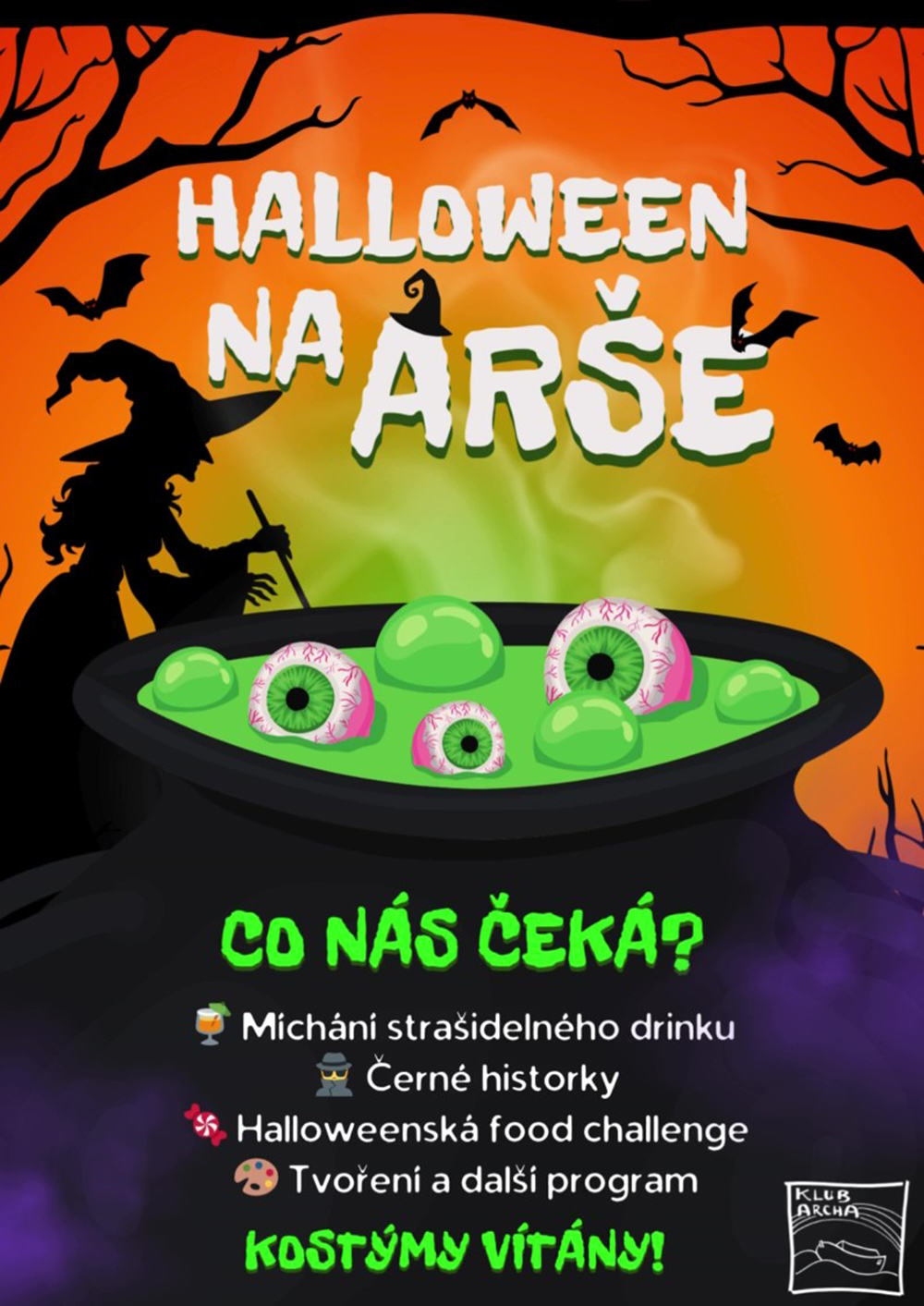 Závěr konec měsíce patřil Halloweenu na Arše, který jsme na klubu pojali s nadsázkou a spoustou radosti. Společně jsme připravovali strašidelné pokrmy, míchali „krvelačné“ drinky a předváděli své kostýmy – fantazii se meze nekladly. Hra Černé historky rozproudila napětí i smích: uživatelé se snažili vyřešit krátké záhadné příběhy plné napětí a nečekaných zvratů, a zároveň se u toho pořádně pobavili. Nechybělo ani tvoření z kaštanů. Celý den sliboval skvělou atmosféru, kde si každý mohl užít tvoření, hry i společnost ostatních a připomenout si, že být spolu je prostě fajn.