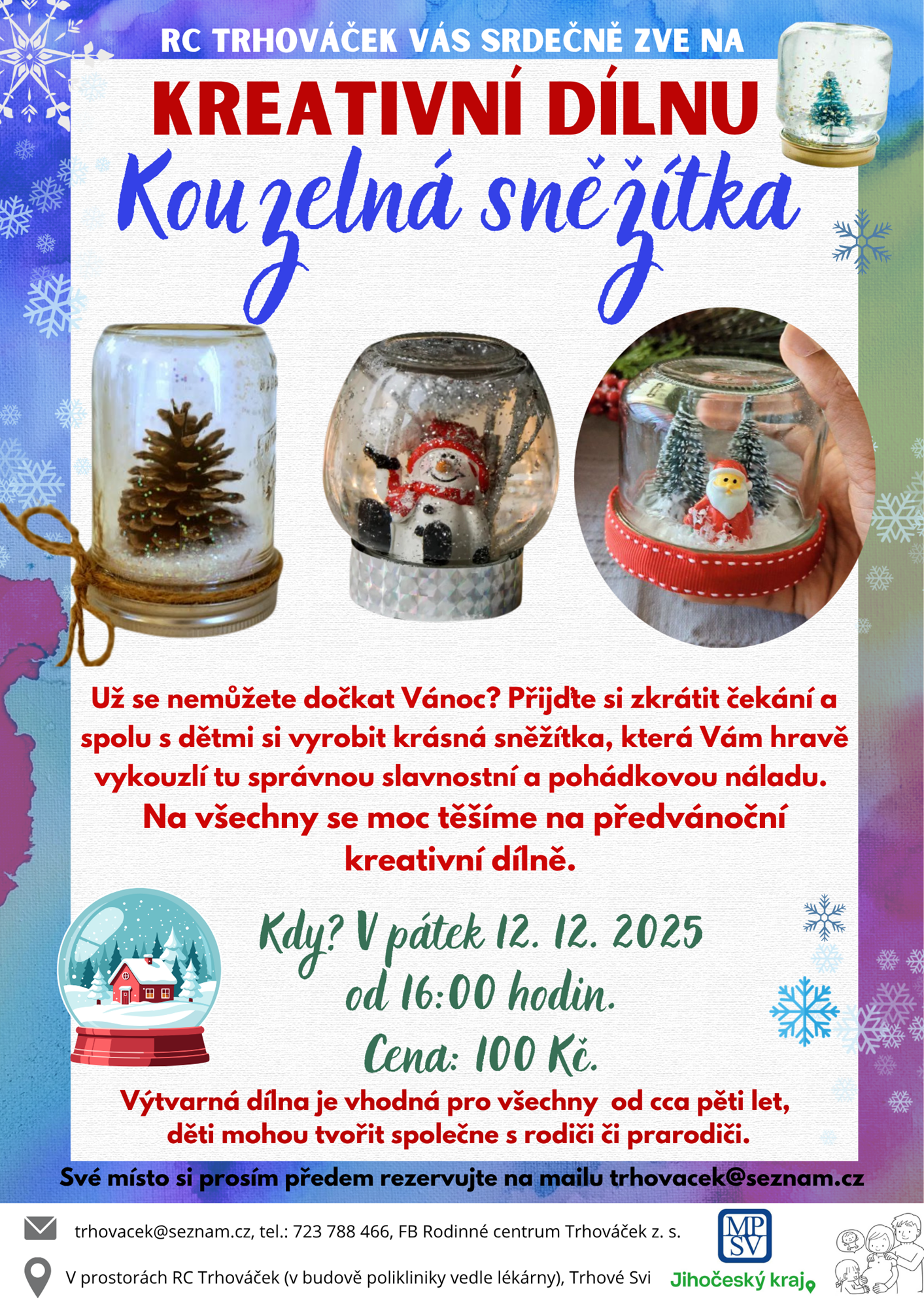 Přijďte si čekání na Vánoce zkrátit tvořením a vyrobte si s námi kouzelná sněžítka.