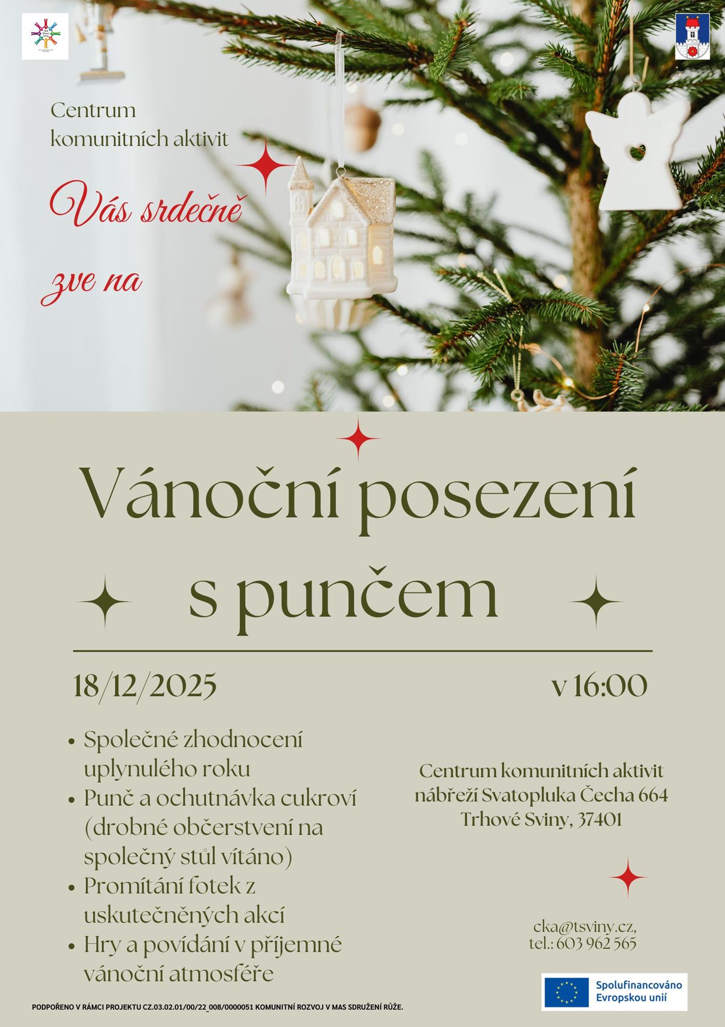 18. 12. od 16:00 zakončíme tento rok v CKA u vánočního punče a cukroví. Promítneme si fotky z našich společných akcí, zahrajeme si nějaké hry a připraven bude i vánoční kvíz. Těšíme se na společné setkání, popovídání a zastavení se v tomto předvánočním čase. Můžete přinést ochutnat vaše domácí cukroví.