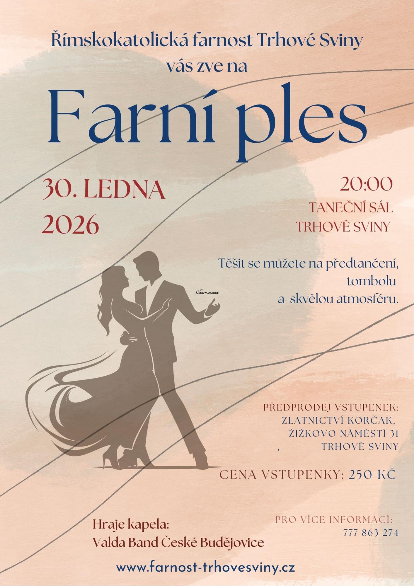Jiná PořadatelFarnost Trhové Sviny Popis 30. ledna vás zveme na ples Trhovosvinenských farností. K poslechu zahraje Valda Band České Budějovice.