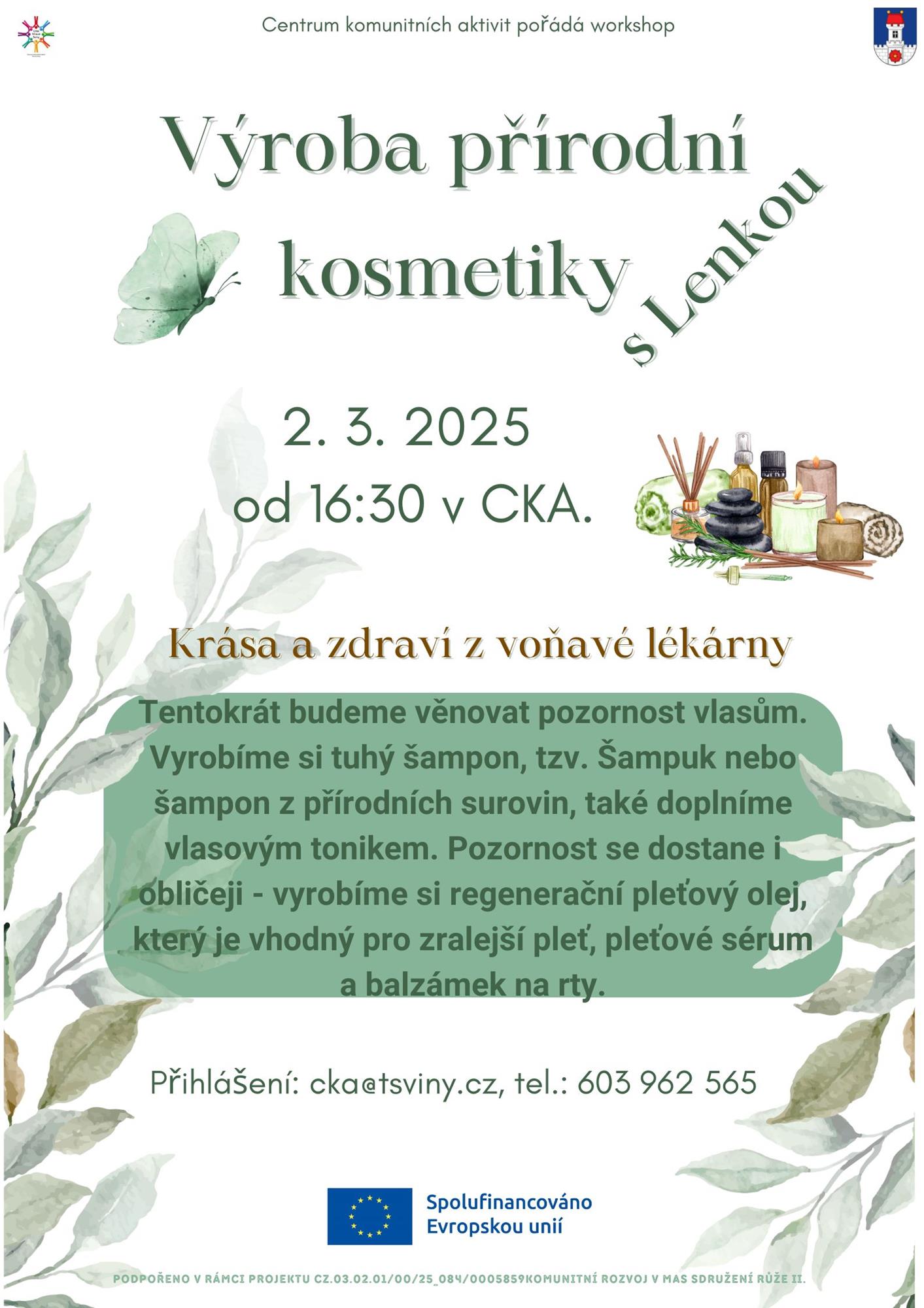 Vzdělávání PořadatelCentrum komunitních aktivit Popis Tentokrát budeme věnovat pozornost vlasům. Vyrobíme si tuhý šapmon ale také regenerační pleťový olej.