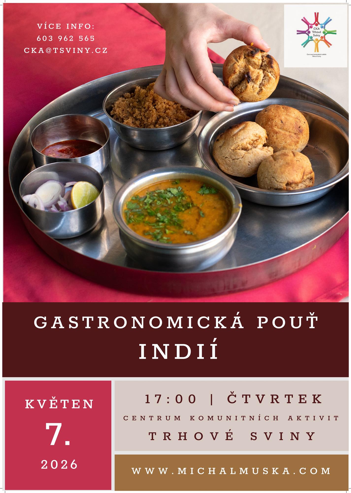 Zkušený cestovatel Michal Muška nás navštíví již po několikáté, tentokrát s přednáškou zaměřenou čistě na téma indického jídla a všeho, co k němu patří! Těšit se můžete na vydatnou porci fotografií, videí a příběhů zaměřených na následující témata: Regionální rozmanitost, street food, jak se vaří doma, kolébka koření. Všichni jsou srdečně zváni. Vstupné dobrovolné. Přihlašování na emailu: cka@tsviny.cz nebo na tel.: 603 962 565